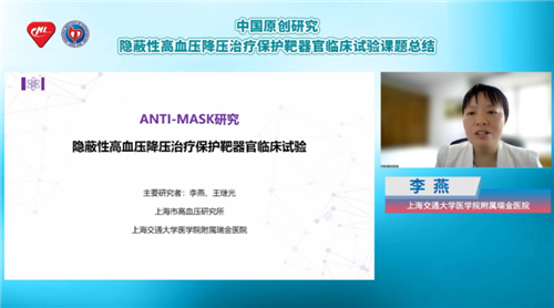 隱蔽性高血壓是一種特殊類型的高血壓,患者來院時偶測血壓數據可能不高,需要通過24小時動態血壓監測或家庭血壓監測來診斷。據國內眾多研究顯示,隱蔽性高血壓患者靶器官損傷和心血管事件發生風險較正常血壓者顯著增加,ANTI-MASK研究作為第一項探索隱蔽性高血壓患者降壓治療效果的臨床試驗,首次說明了降壓治療有利于隱蔽性高血壓患者的靶器官保護。為讓更多臨床醫生知曉隱蔽性高血壓危害,優化隱蔽性高血壓患者治療策略,在第八屆中國血壓監測學術會議期間,上海市高血壓研究所、上海交通大學醫學院附屬瑞金醫院李燕教授特帶來專題報告,解讀ANTI-MASK研究的試驗流程與試驗結果。
